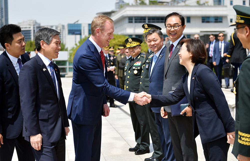 (사진. 2019 한미국방장관회담을 위해 방문한 패트릭 섀너핸 미국 국방부 장관 대행과 인사하는 최현수 동문)