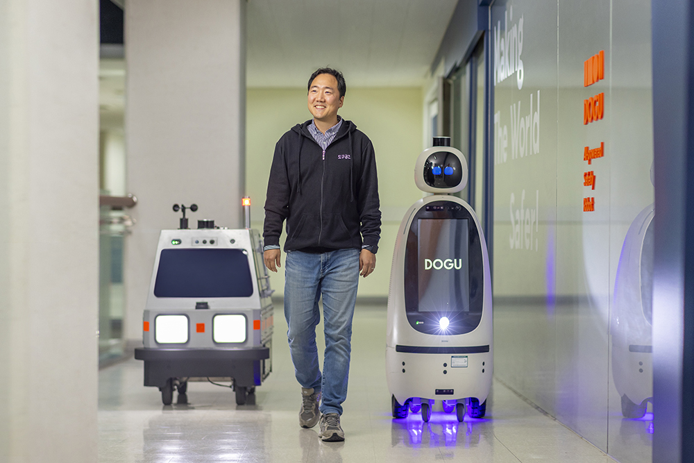 “도구공간의 로봇은 결국 사람이 하기 싫어 하거나 위험한 일들을 도와주는 것이 목적이에요. 그런데 미국이나 남미는 총기 사고나 강도가 많잖아요. 순찰 로봇을 제공해 달라는 요청들이 작년부터 오기 시작했어요. 지난해 미국 라스베이거스 보안 전시 ISC WEST에 참여했다가 고객을 만나게 됐죠. 콜롬비아와 브라질 쪽에서 가장 큰 보안 회사를 운영하고 있는 담당자가 경비 시장의 미래라고 하면서 저희 순찰 로봇을 도입하겠다고 한국까지 와서 연구소를 보고 가기도 했고, 내년에는 본격 도입하는 것으로 준비하고 있습니다. 최근에는 캘리포니아에 있는 SK하이닉스 미국 법인에도 순찰 로봇을 공급했습니다. 첫 수출이라 뿌듯합니다. 그곳에서는 경비를 서는 것 자체가 무서운 환경이라고 하더라고요. 로봇이 가서 안내와 순찰을 대신 하면 ‘사람’에게 중요한 도움을 주는 것이죠. 우리가 정말 의미 있는 일을 하고 있구나, 하는 생각을 합니다.”